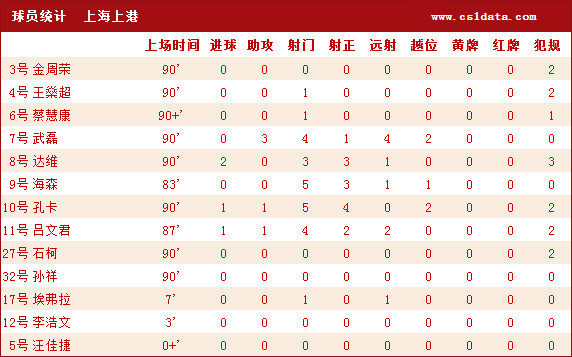 锋线方面,外援加布里埃尔在上海德比中遭遇右膝髌骨肌腱断裂重伤,赛季大概率提前报销-48-21。主力中后卫蒋光太因膝盖伤势长期缺席,2026赛季至今未登场一分钟,他的缺阵直接导致海港防线质量断崖式下滑-50。武磊受持续性膝伤困扰,出场时间被限制在30分钟左右,难以发挥全部实力-50。